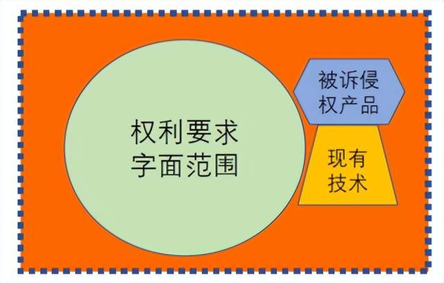 反之,如果该假想的权利要求相对于现有技术不具有新颖性,则专利权人不能获得等同的范围,法官自然没有必要再进行等同判断,如图4所示,等同的边界(矩形虚线)没有做实,权利要求字面范围即为专利保护范围。