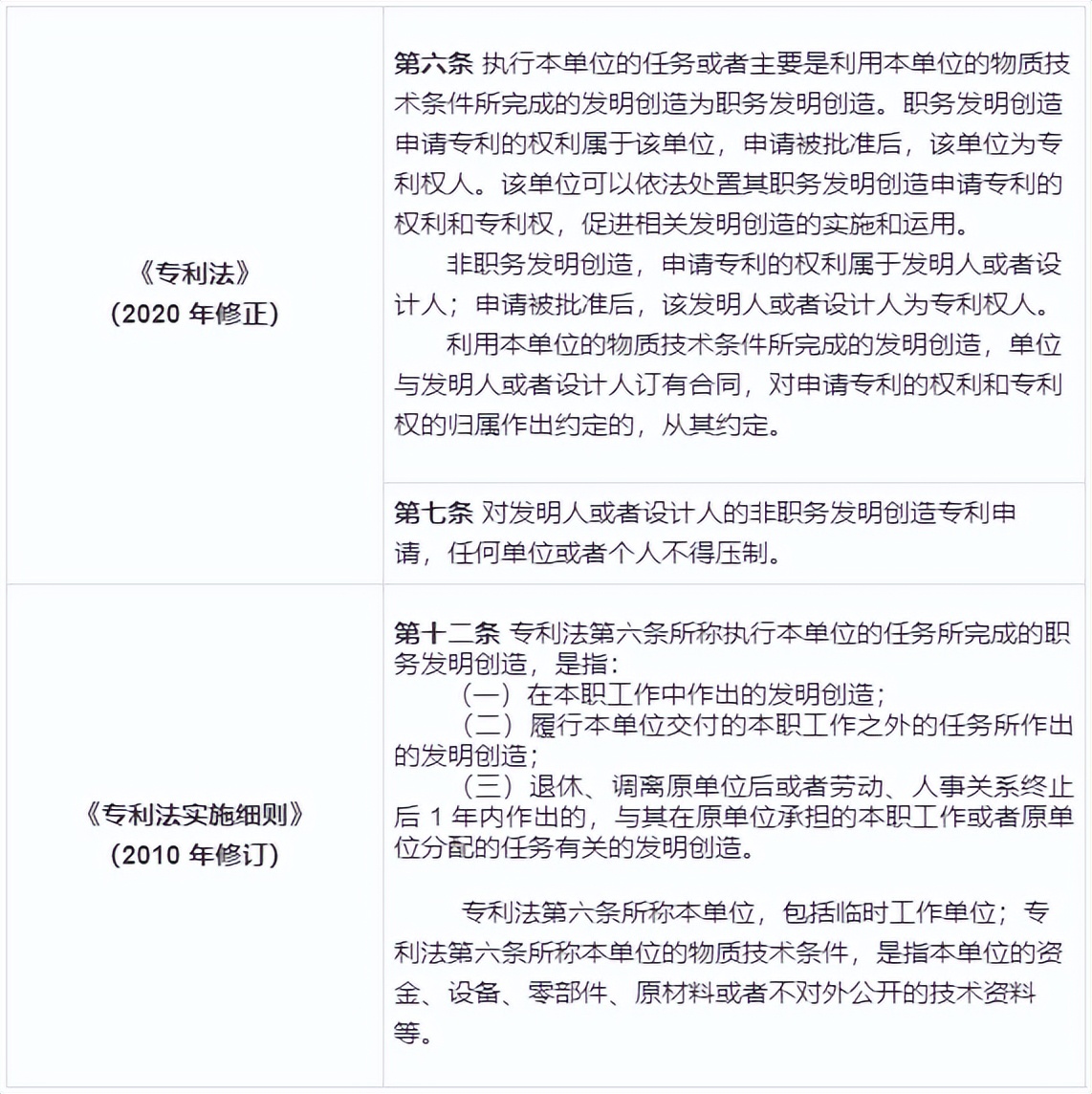 二、我国法律法规中涉及个人与单位间专利权属的规定