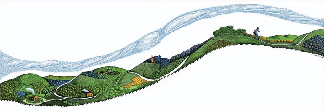 此图讲述老爷爷为了老奶奶出门去找猫,老爷爷走了很远很远……出自婉达.盖格《一百万只猫》