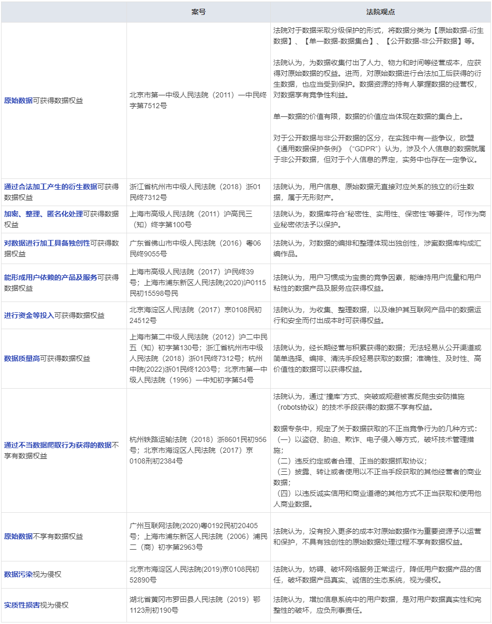 近年来,通过对相关案件的梳理,可以看出司法实践对不同类型数据权益的肯定,现有的数据司法保护模式主要有数据库保护模式、商业秘密保护模式、反不正当竞争法保护模式三种。