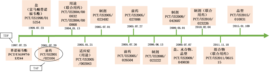 图 8 吉利德代表性药品替诺福韦酯相关专利技术维度布局