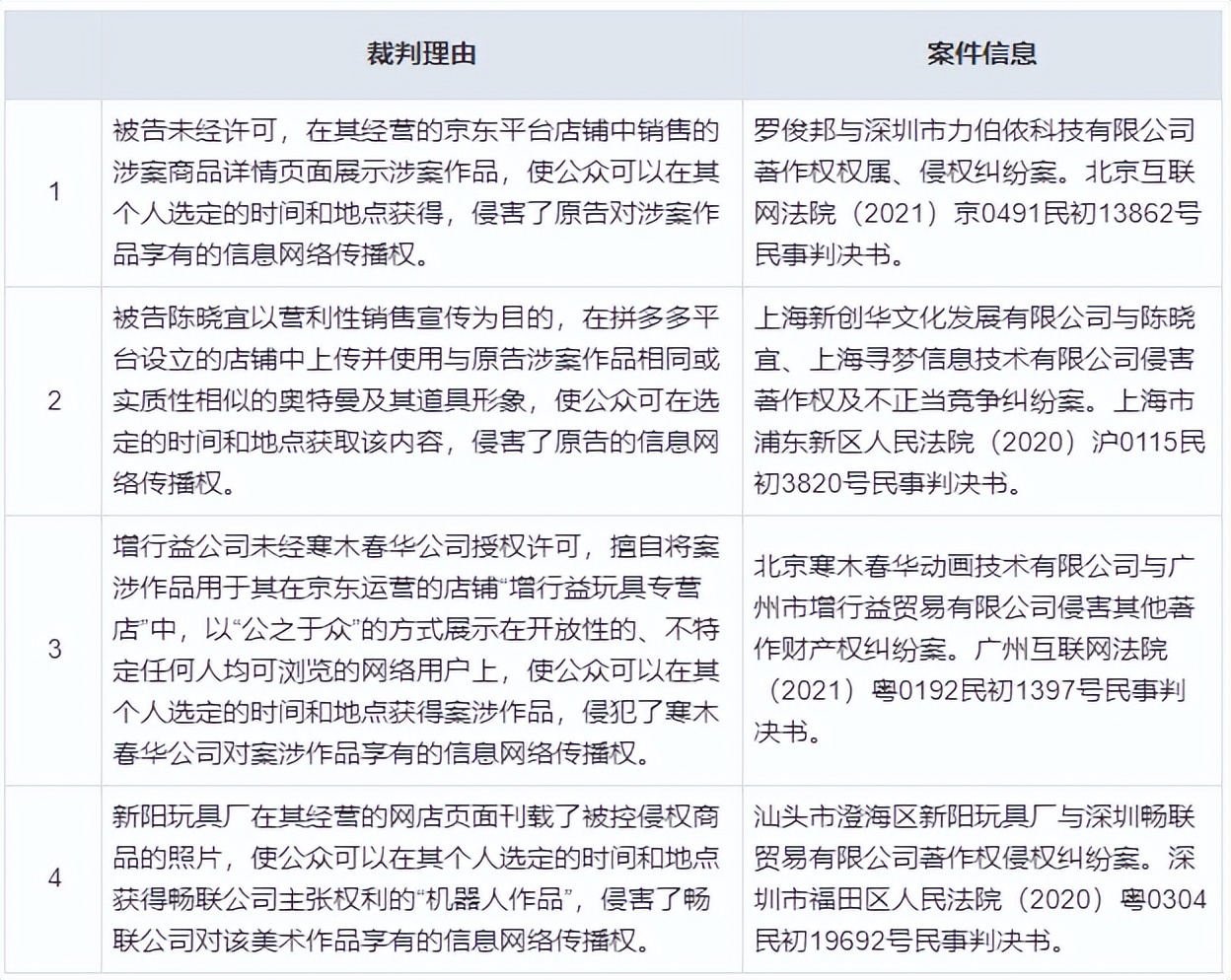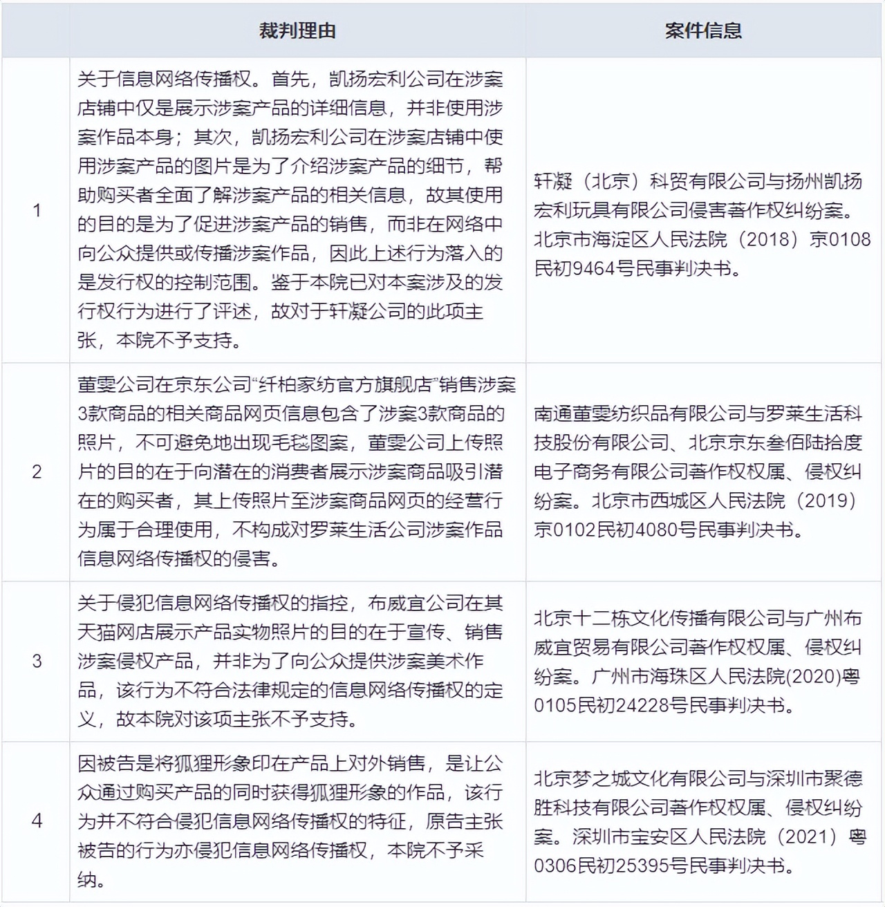 【2】部分案件的裁判理由与案件信息: