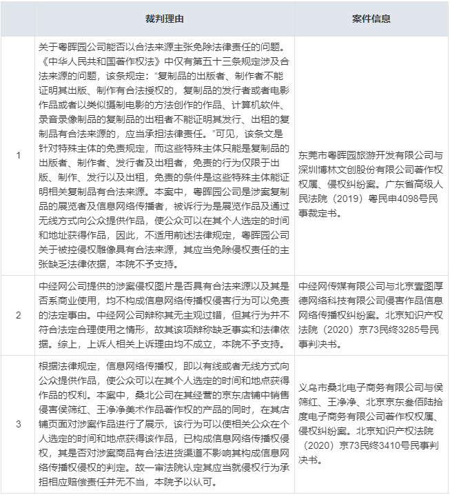 【7】合法来源抗辩,已被很多法院列为著作权案件审理要素。