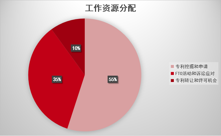 实际上,在有科技含量的行业,完全无知识产权风险意识的出海企业已经不多。然而,传统中,出海企业知识产权工作的工作量和重心分配如下图所示: