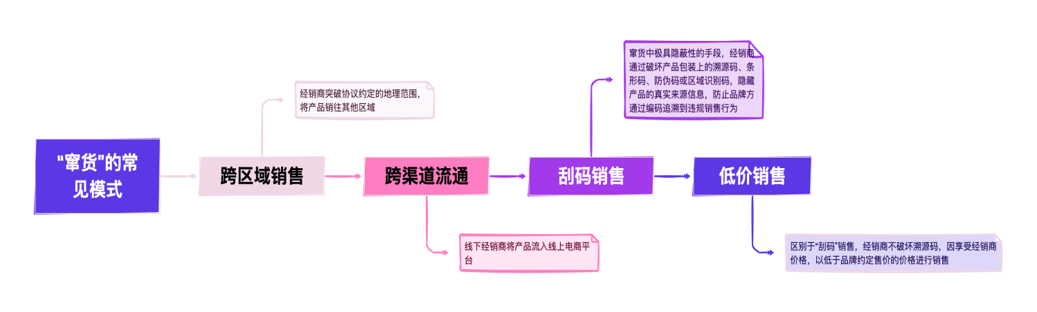 从行为表现来看,窜货并非单一形态,而是通过多种方式规避品牌方监管,常见模式包括四类:一是跨区域销售,即经销商突破协议约定的地理范围,将产品销往其他区域,例如将仅允许在华北地区销售的化妆品销往华南市场;二是跨渠道流通,表现为线下经销商将产品流入线上电商平台(如拼多多、京东),或一级经销商向未授权的二级分销商供货,绕开品牌方的渠道层级管控;三是刮码销售,这是窜货中极具隐蔽性的手段,经销商通过破坏产品包装上的溯源码、条形码、防伪码或区域识别码,隐藏产品的真实来源信息,防止品牌方通过编码追溯到违规销售行为,此类行为在化妆品、保健品等需要溯源管理的行业尤为普遍;四是低价销售,其区别于“刮码”销售,经销商不破坏溯源码,因享受经销商价格,以低于品牌约定售价的价格进行销售。
