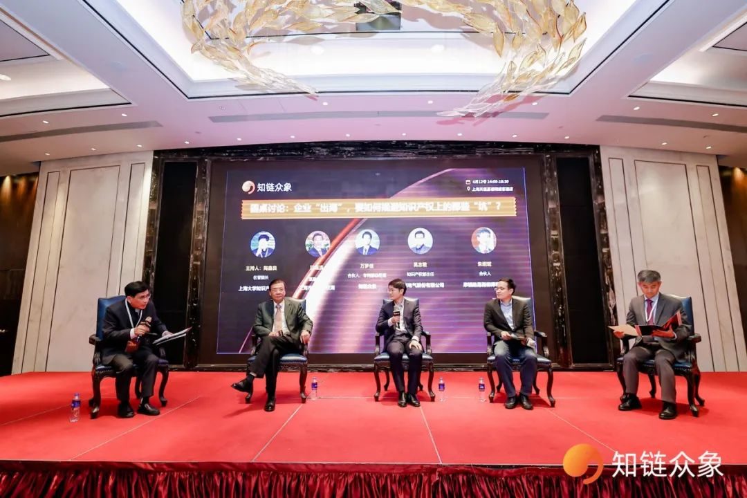 此次活动最后圆桌重磅讨论围绕“企业“出海”,要如何规避知识产权上的那些“坑”?”进行交流,上海大学知识产权学院名誉院长陶鑫良主持,上海市知识产权局原副局长洪涌清、知链众象合伙人、专利部总经理万罗佳、莱克电气股份有限公司知识产权部主任吴志敏、摩根路易斯律师事务所合伙人朱绍斌参与交流讨论。