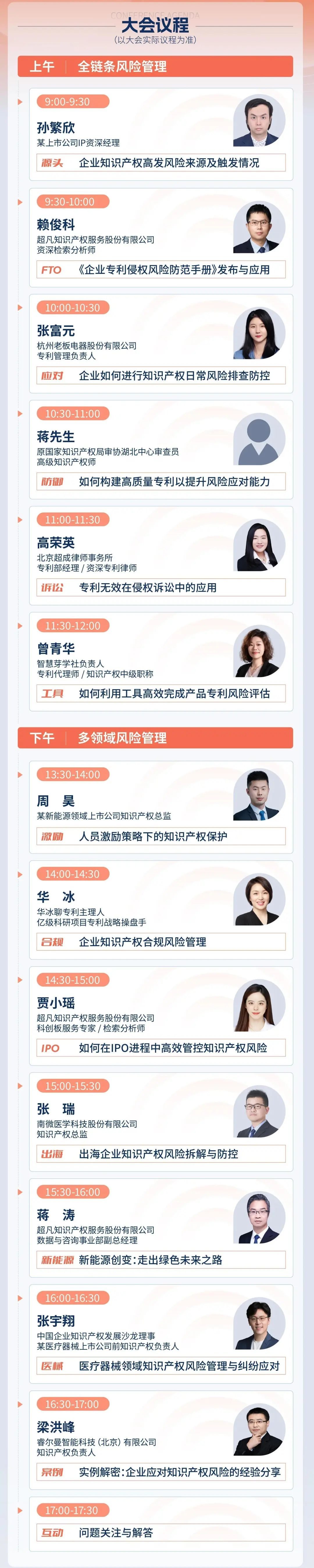 因此,我们决定举办线上“2023企业知识产权风险管理大会”,邀请知识产权行业资深专家、企业IP负责人及优秀的知产风险管控操盘手,一起探讨如何在充满挑战的背景下,如何更好地管理和规避知识产权风险。