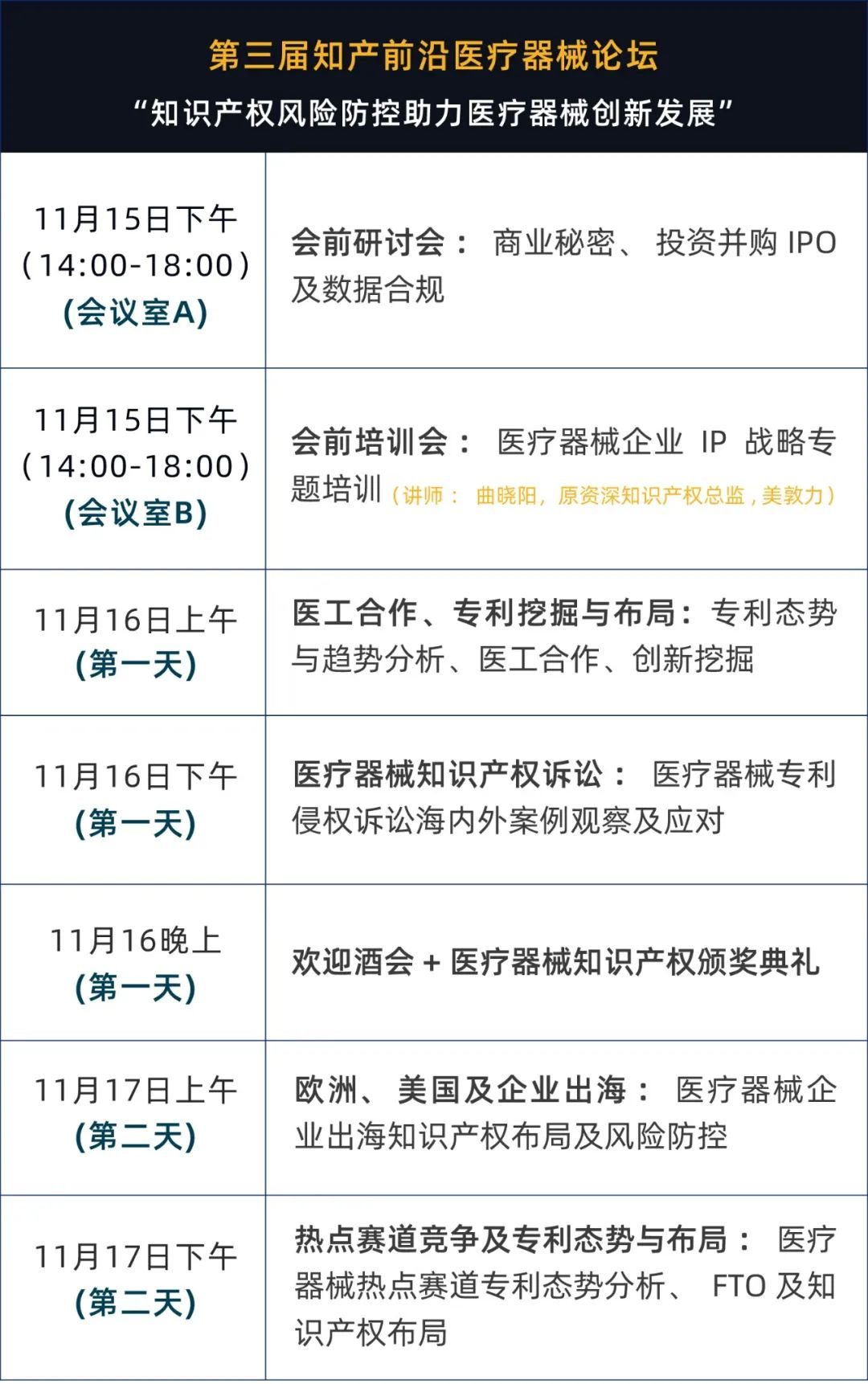 邀请函:11月15-17号 | 第三届知产前沿医疗器械论坛将于深圳召开