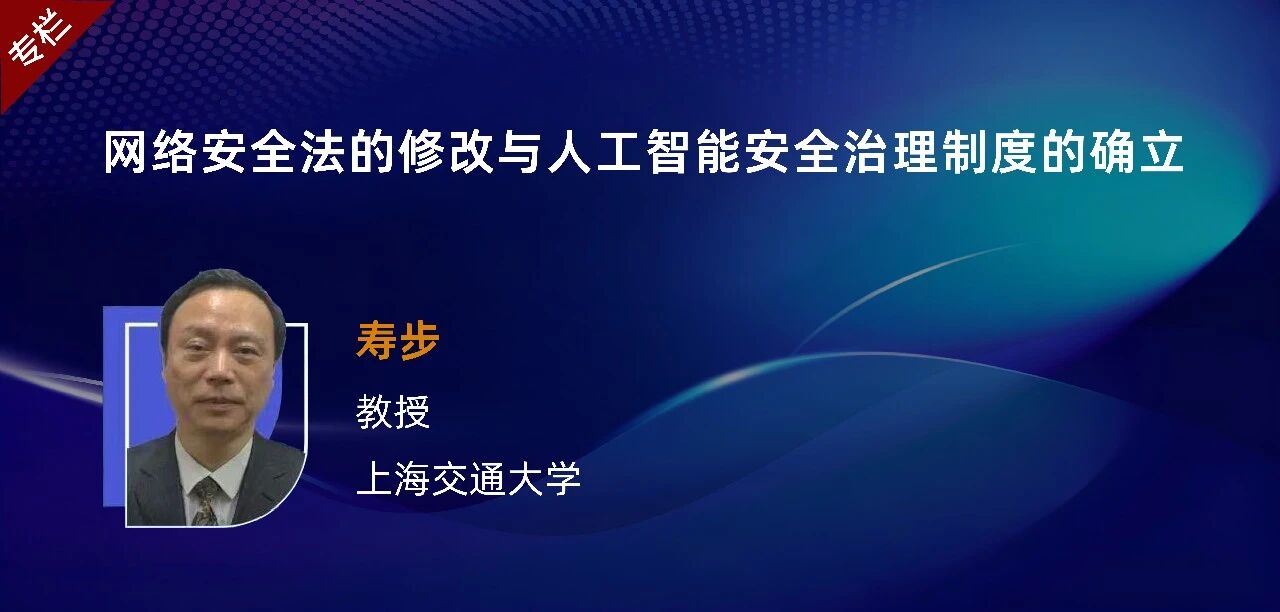 寿步 | 网络安全法的修改与人工智能安全治理制度的确立